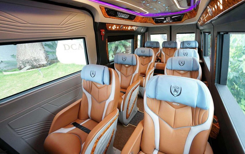 - Ghế ngồi được bố trí trên xe vô cùng rộng rãi và thoải mái là điểm nhấn giúp mọi hành khách luôn cảm thấy dễ chịu nhất. Trần xe được trang bị hệ thống đèn led luôn sáng lấp lánh theo phong cách hoàng gia cực sang trọng và đẳng cấp.